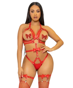Envuélvete en la sofisticación con este teddy arnés de Leg Avenue, perfecto para una noche especial o para darle un giro audaz a tu colección de lencería. Descubre la confianza y la sensualidad que te mereces. ¡Atrévete a experimentar el placer sin límites! Ideal para regalos, lencería sexy, arnés de cuero vegano, ropa erótica, o simplemente para sentirte increíblemente atractiva.