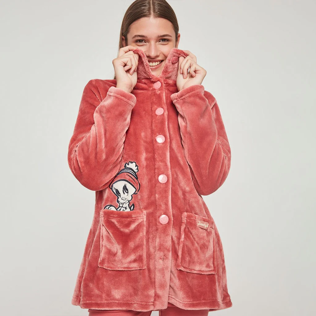 <p>¿Buscas la combinación perfecta de comodidad y estilo para tus momentos de relax? ¡La bata 2/1844 Piolín Gisela es justo lo que necesitas! Imagina la suavidad de su tejido de coralina, abrazándote con una calidez incomparable. Con su cierre de botones, te permite ajustarla a tu gusto y disfrutar de una experiencia personalizada. El adorable aplique de Piolín en el bolsillo añade un toque divertido y encantador.</p>
