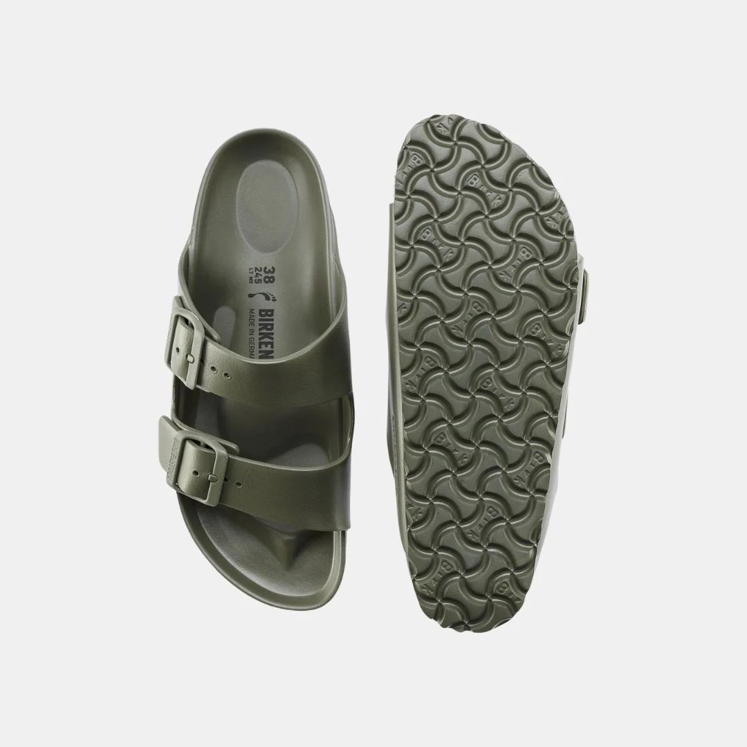 Disfruta de la base anatómica BIRKENSTOCK que se adapta a la forma de tu pie, brindándote un soporte excepcional y una sensación de bienestar durante todo el día. Su diseño ligero y flexible te permite moverte con total libertad. ¡Las Birkenstock Arizona EVA en caqui son más que unas sandalias, son una declaración de estilo y conciencia! Elige la comodidad, elige la calidad, elige Birkenstock.