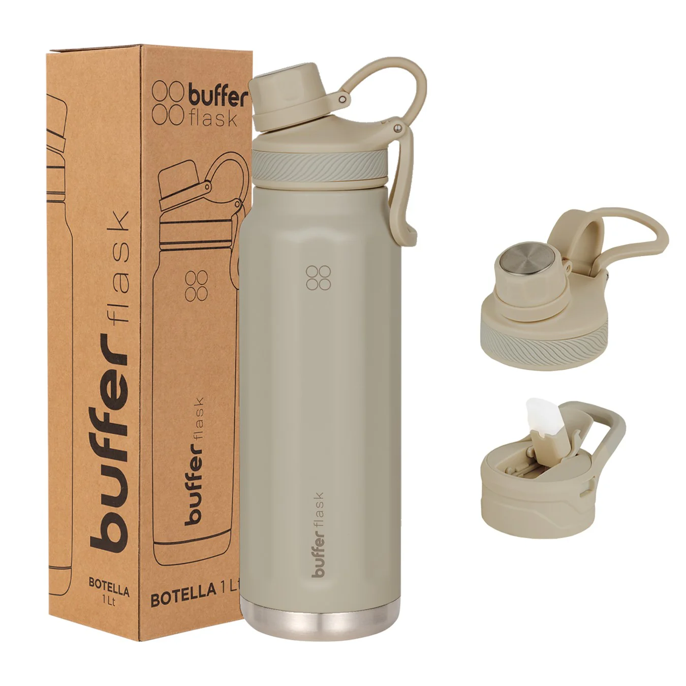 Botella Térmica Buffer Acero Inoxidable 1Lt + 2 Tapas Mocha: ¡Tu compañera ideal para hidratarte con estilo!