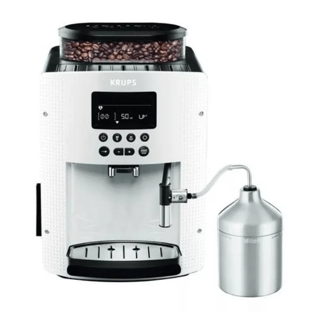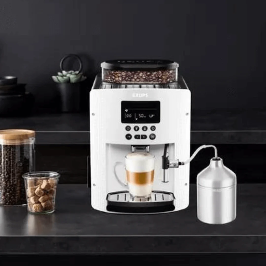 ¿Quieres hacer tu café con leche o sin leche? No hay problema, ya que nuestra cafetera cuenta con un recipiente de leche y un detector de cal automático para que puedas disfrutar de un café perfecto cada vez.