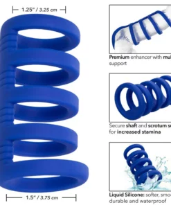 Un conjunto graduado de anillos crea un soporte seguro para el eje y el escroto, permitiéndote disfrutar de un placer verdaderamente explosivo. Sin duda, nuestra silicona líquida premium es más suave, tersa y duradera que nunca antes.