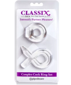 ¡Duplica el placer con CLASSIX – Set para Parejas de Anillos Pene Transparentes!
