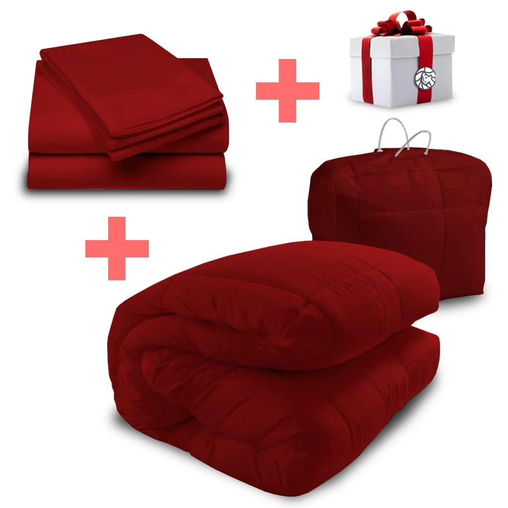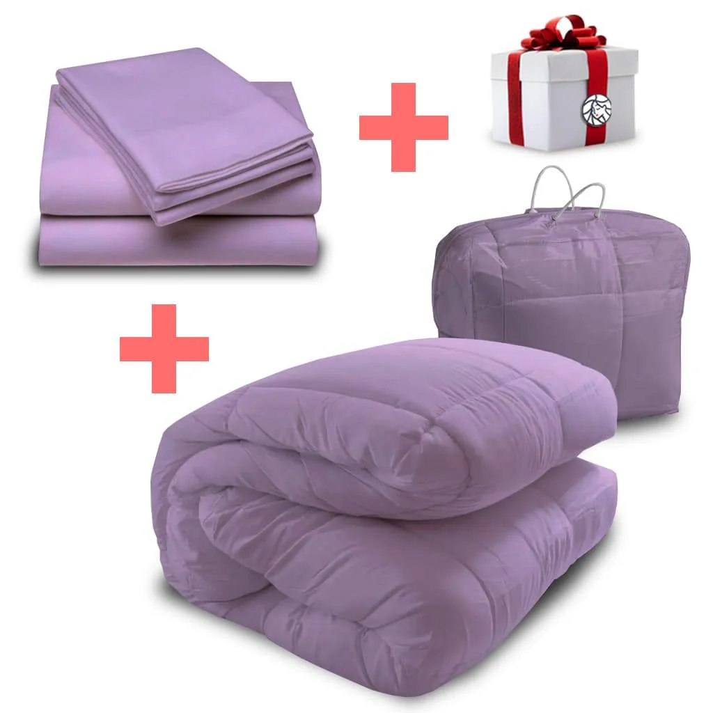 ¡Personaliza tu descanso! Somos fabricantes, por lo que puedes elegir los colores que más te gusten. ¡Y no te pierdas el REGALO sorpresa que viene incluido! El regalo es variado y depende del stock disponible. ¡No esperes más y transforma tus noches con nuestro combo de ensueño! Se recomienda lavar el acolchado en tintorería.