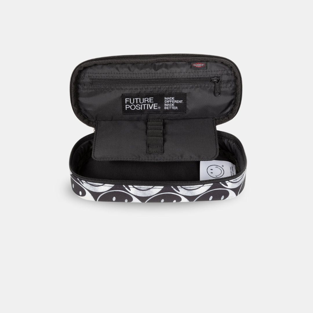 ¡Sonríe con el Eastpak Oval Single Smiley YY Black! Este estuche, fruto de la colaboración oficial con Smiley®, te contagiará alegría allá donde vayas. Con su icónico diseño yin y yang, este clásico de Eastpak no solo es un accesorio, es una declaración de optimismo.