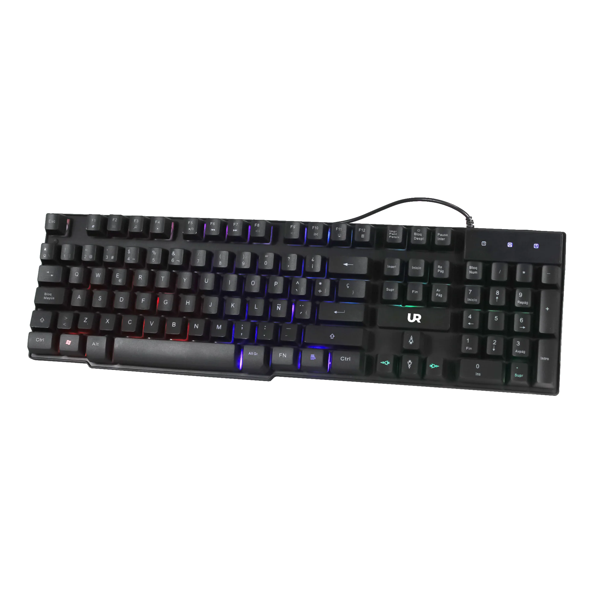 El teclado gamer te ofrece comodidad y rendimiento con sus 105 teclas, idioma español y teclado numérico. Con conexión USB y cable reforzado de PVC, es compatible con Windows y fácil de usar.