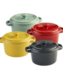 Incluye: 8 Mini Ramekines de cerámica con tapa. Características: Dimensiones Redondos: 9×5 cm. Dimensiones Ovalados: 10×7,5×4 cm. Apto para horno. Colores, formas de ramekines y formas de tapas, vienen surtidas.