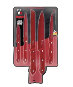 ¡Prepara tus platillos favoritos con el SET 6PZ 5 CUCHILLOS + TABLA CORTE ROJO MILKY!