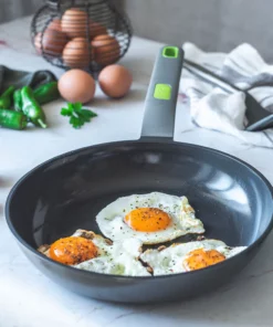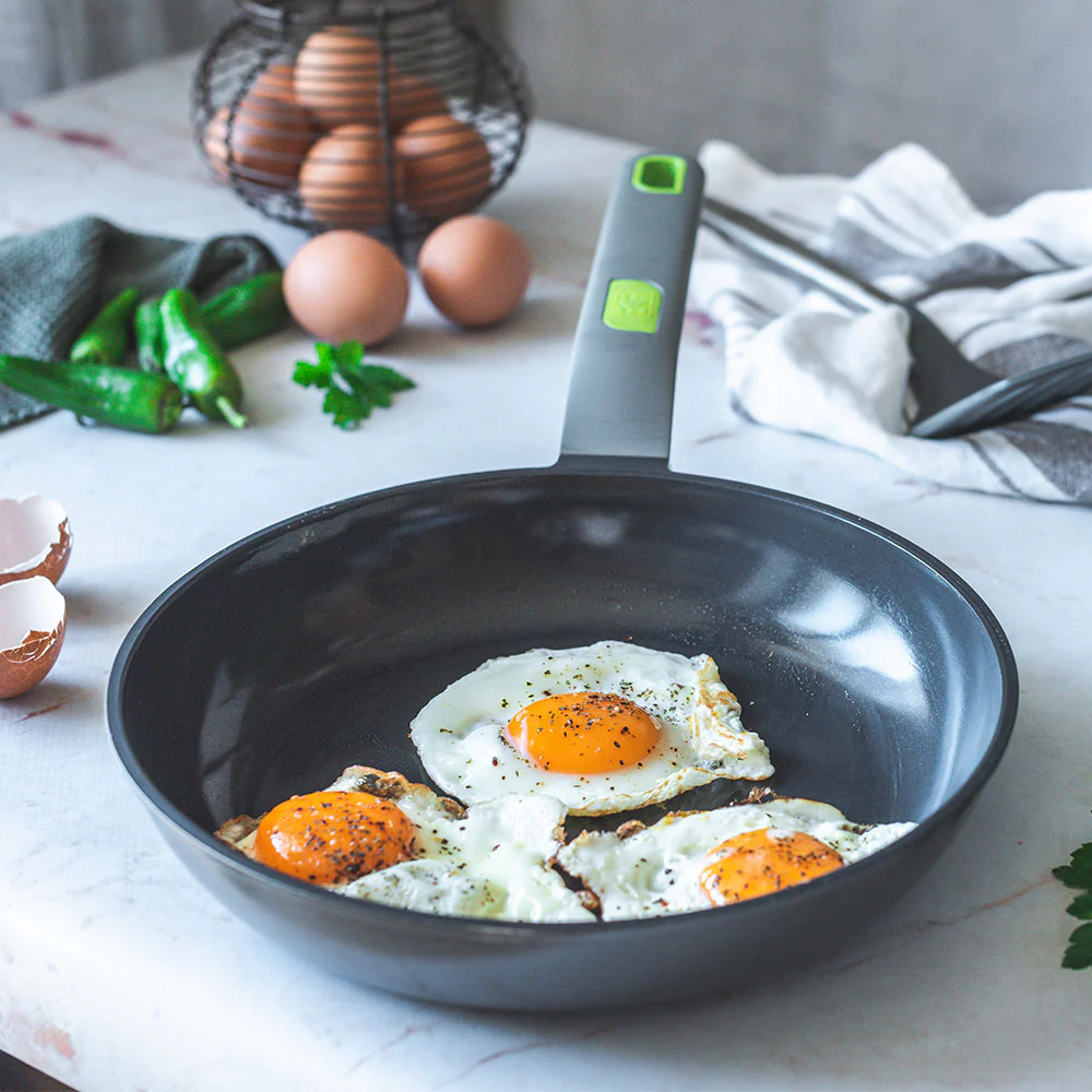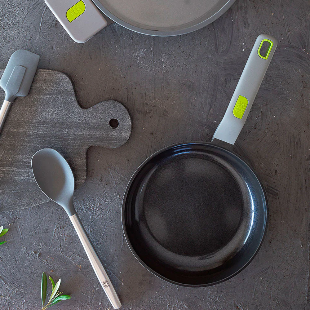 Nuestro set de sartenes de 20, 24 y 28 cm es ideal para cocinar con eficiencia y estilo. El fondo difusor full induction reduce el consumo de energía, mientras que el diseño ergonómico de los mangos facilita el manejo. La superficie de gran resistencia al rayado y el acabado moderno hacen que nuestras sartenes sean el complemento perfecto para cualquier cocina.