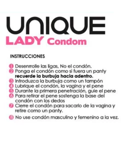 <p>¡Hola, mujer! ¿Buscas una experiencia sexual más libre, placentera y segura? El <strong>Lady Condom Uniq Condón Femenino</strong> es tu solución ideal. Este innovador <strong>condón femenino</strong> te ofrece una protección superior y te permite tomar el control de tu placer. Con su diseño único, que incluye una burbuja de aire para una retención interna segura y delicados sujetadores que simulan ligas, la inserción es fácil y cómoda.</p>